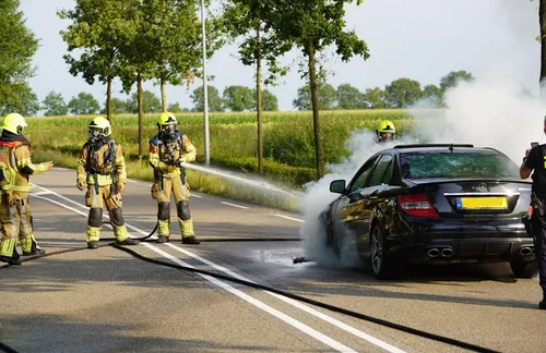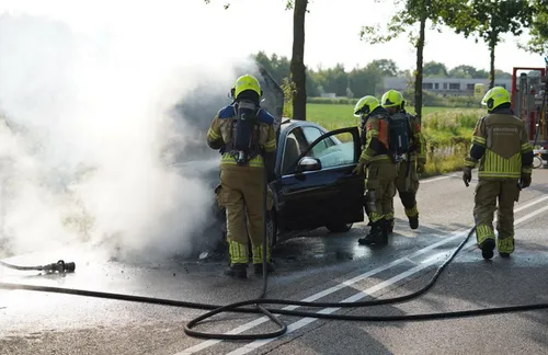 De auto vloog tijdens het rijden in brand. De brandweer kon niet voorkomen dat de auto grotendeels uitbrandde. De bestuurder raakte niet gewond. Een takelbedrijf kwam ter plaatse om de auto te takelen en af te voeren.