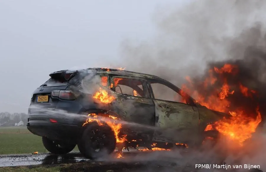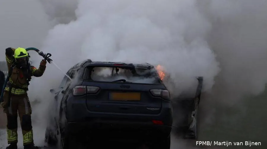 Ze konden nog net wat spullen in veiligheid brengen. De gealarmeerde brandweer was snel tet plaatse maar kon niet meer voorkomen dat de Jeep in vlammen op ging. De brandweer had het vuur snel onder controle. Het gaat om een elektrische auto wat voor de brandweer een extra aandachtspunt is. De beide inzittenden waren flink geschrokken. De oorzaak is niet bekend maar zal een technisch defect betreffen.
