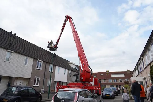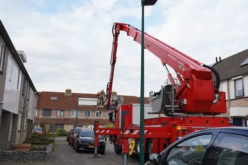 De brandweer heeft vanmorgen een hoogwerker ingezet om een kat van een dak van een woning aan de Tuin In dongen te redden.