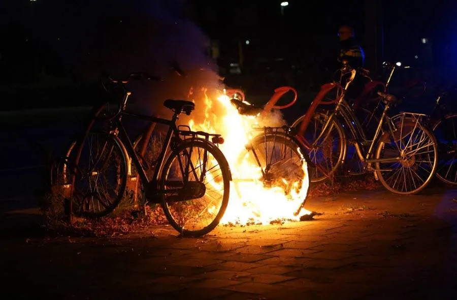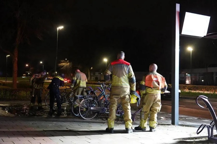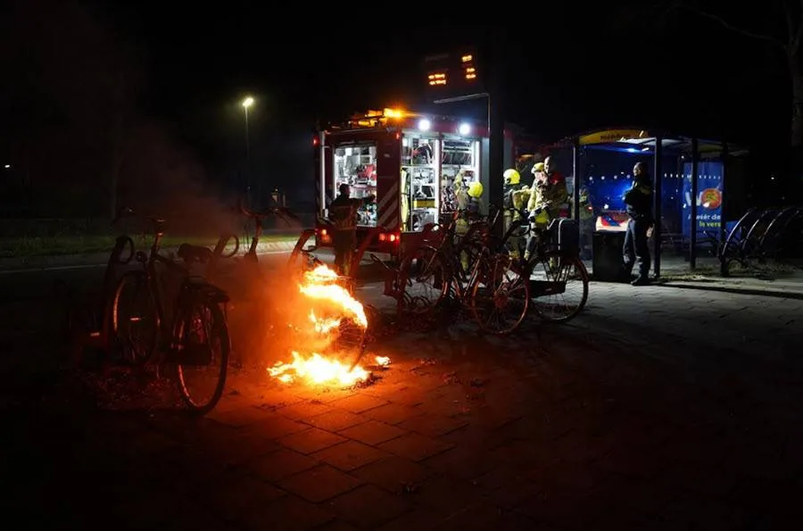 De fiets, die bij een bushalte geparkeerd stond, stond bij aankomst van de brandweer geheel in lichterlaaie. De brandweer had het vuur snel onder controle maar kon niet voorkomen dat de fiets zwaar beschadigd raakte.