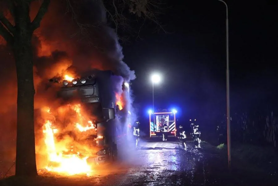 De vrachtwagen, die toebehoorde aan een stucadoorsbedrijf, brandde volledig uit. Het bluswerk vereiste de inzet van een extra watertank van de brandweer van Oosterhout. De politie hield omstanders op afstand vanwege het risico op klappen van de brandende banden.