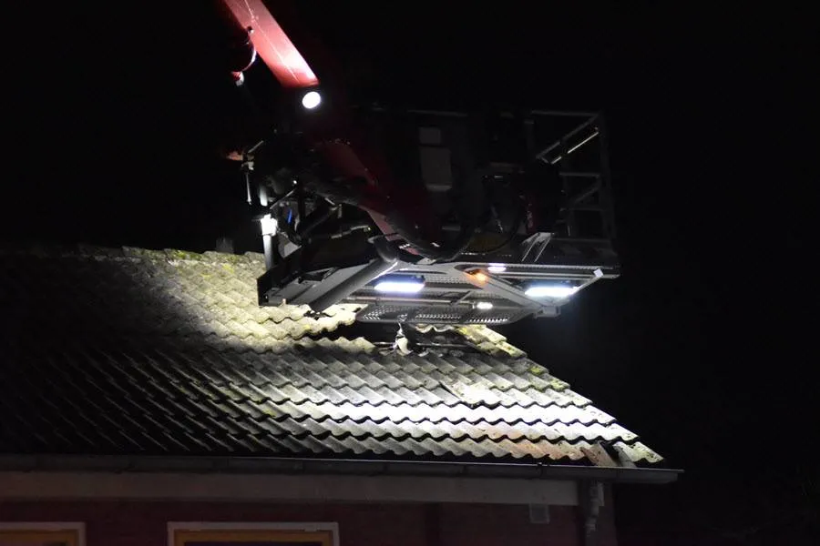 De brand ontstond in het dak van de woning, maar de bewoners hebben op tijd het pand kunnen verlaten. De brandweer heeft een deel van het dak gesloopt om het vuur effectief te bestrijden.