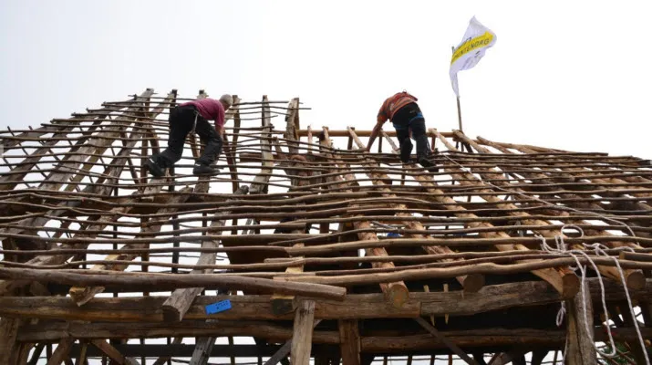 Trots is de heemkundekring op haar vrijwilligers die een 16de eeuwse Vlaamse schuur geheel ambachtelijk, eerst hebben ontmanteld en nu aan het herbouwen zijn aan de Oude Oosterhoutse Baan. Vele bezoekers namen ook hier een kijkje. Uiteraard lieten de vrijwilliger de vele werkzaamheden, zoals het disselen en rietdekken, zien.