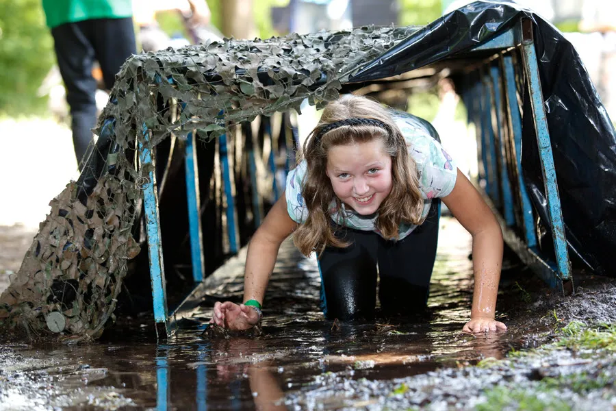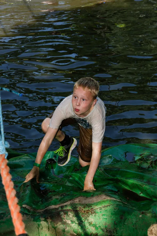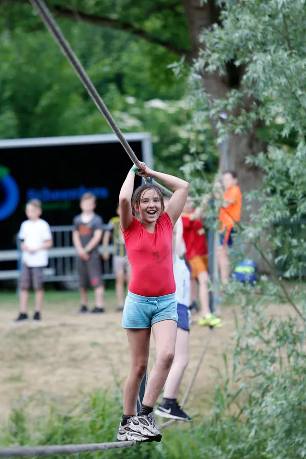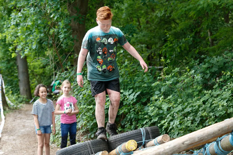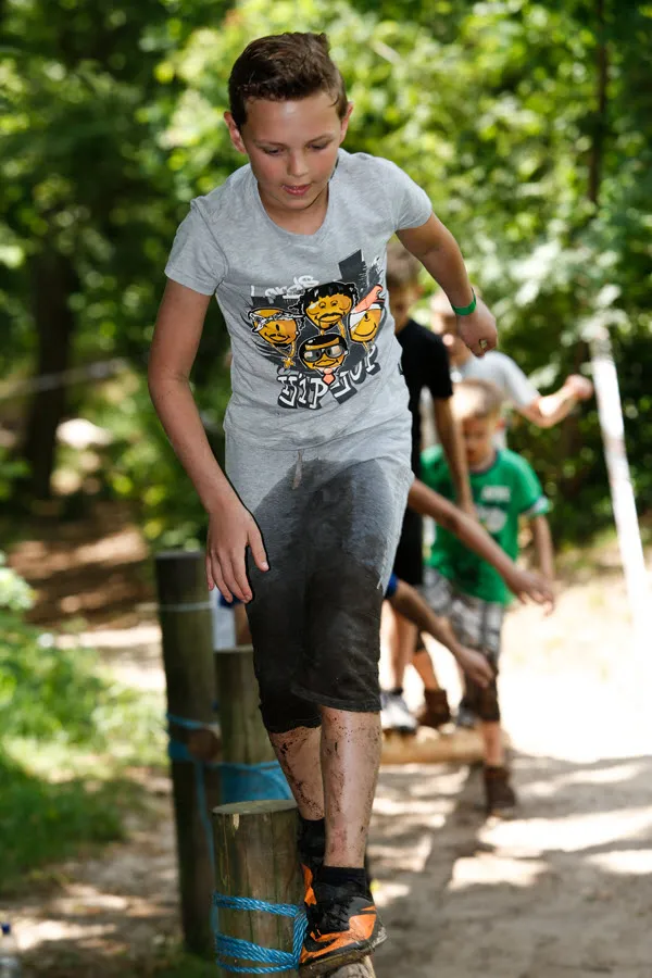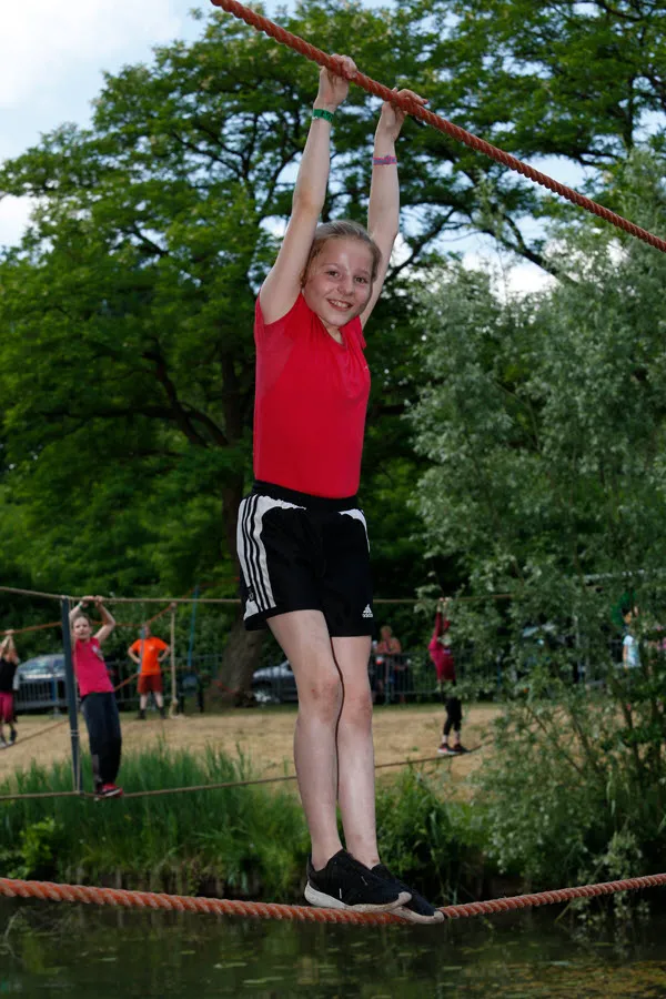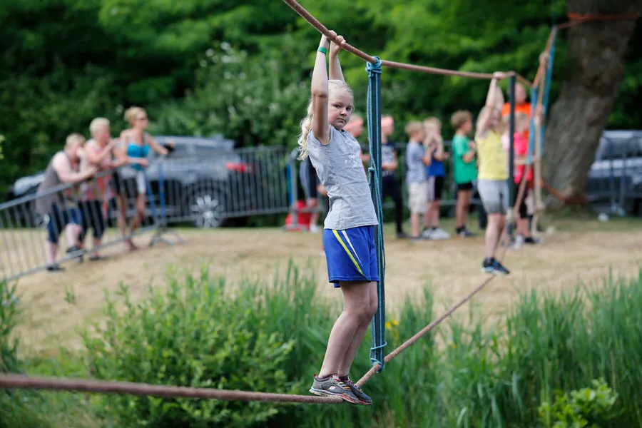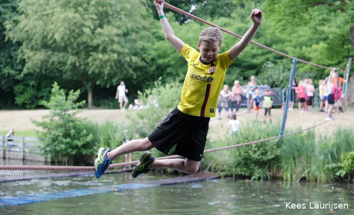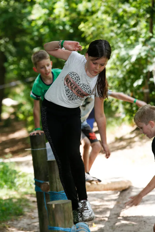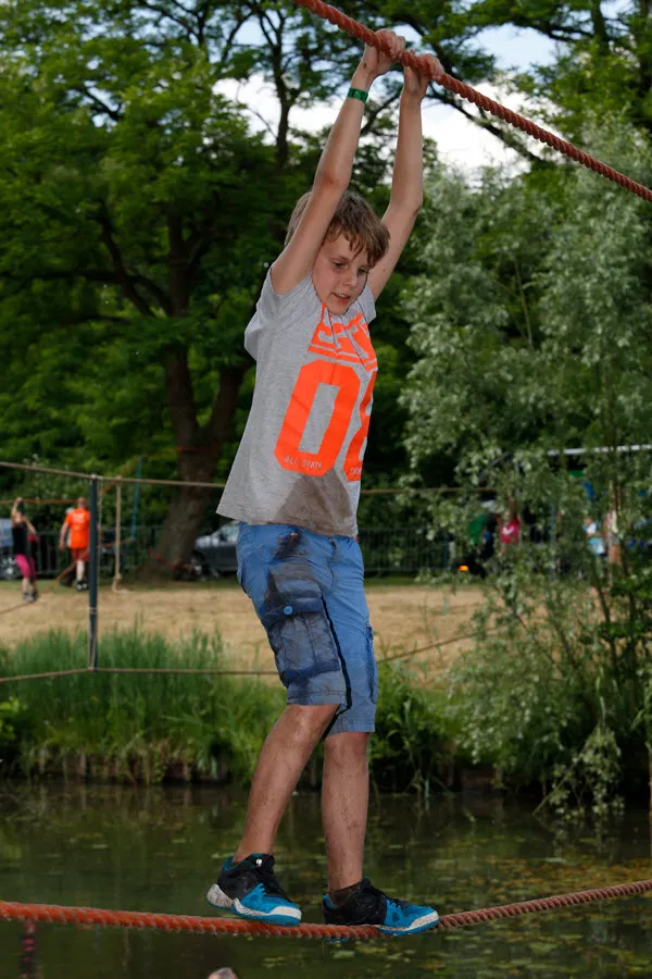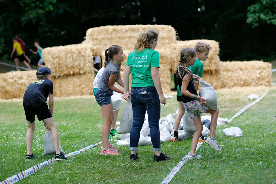 De survival voor de kinderen uit de groepen 6,7 en 8 van de basisscholen besloeg een 3,5 kilometer lange tocht vanaf De Vennen via het Trimbos naar de Kanovijver waar leuke en soms natte hindernissen te nemen waren. Alle hindernissen werden bemand door een groot aantal vrijwilligers. Een deel van hen is al sinds afgelopen weekend bezig met het bouwen van alle hindernissen en heeft al die dagen gekampeerd in de ‘tuin’ van zwembad De Vennen.