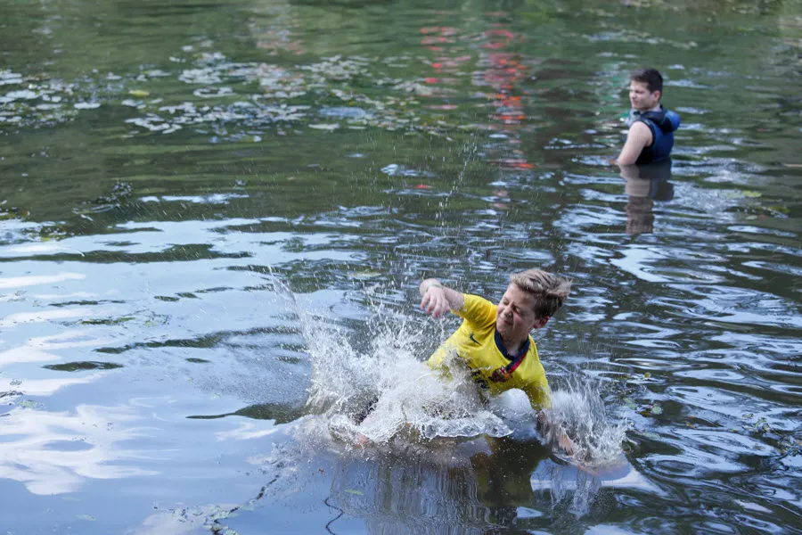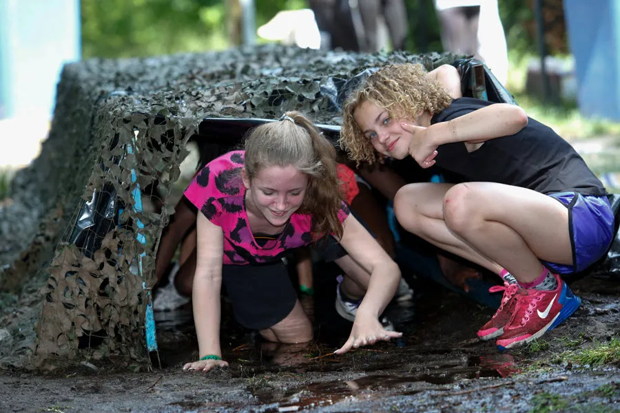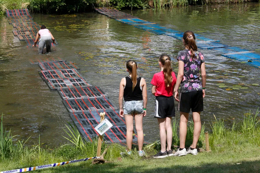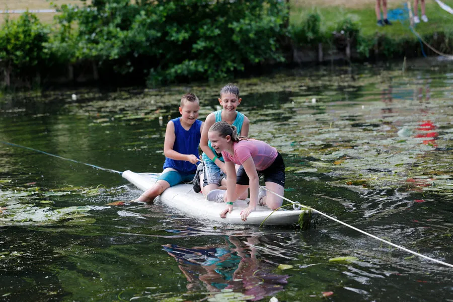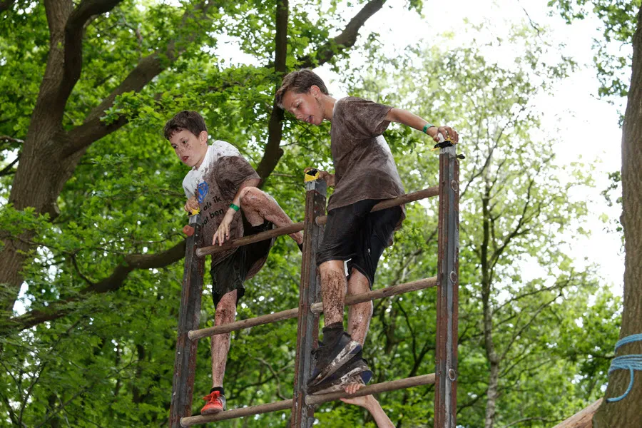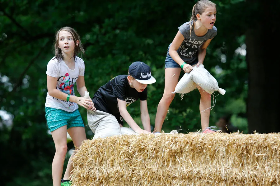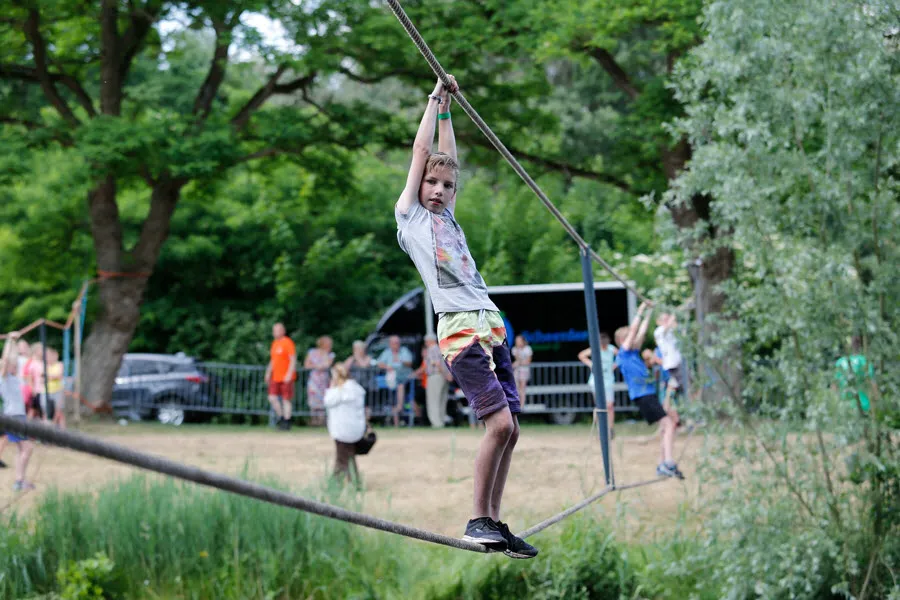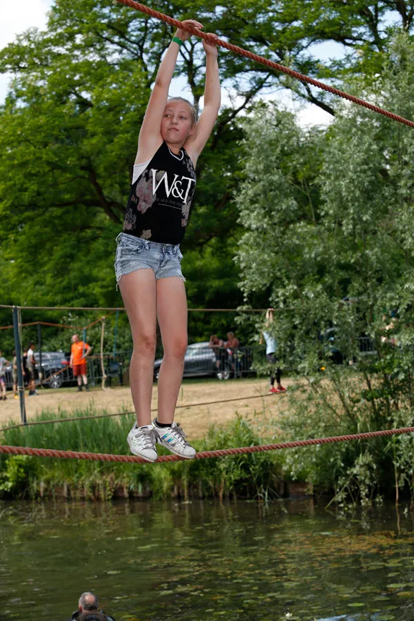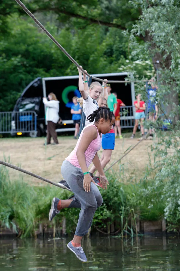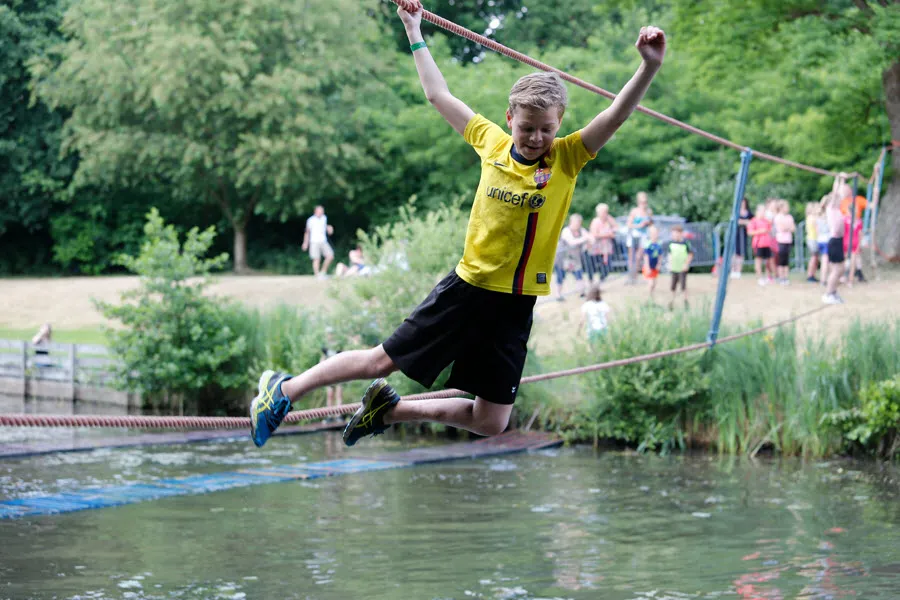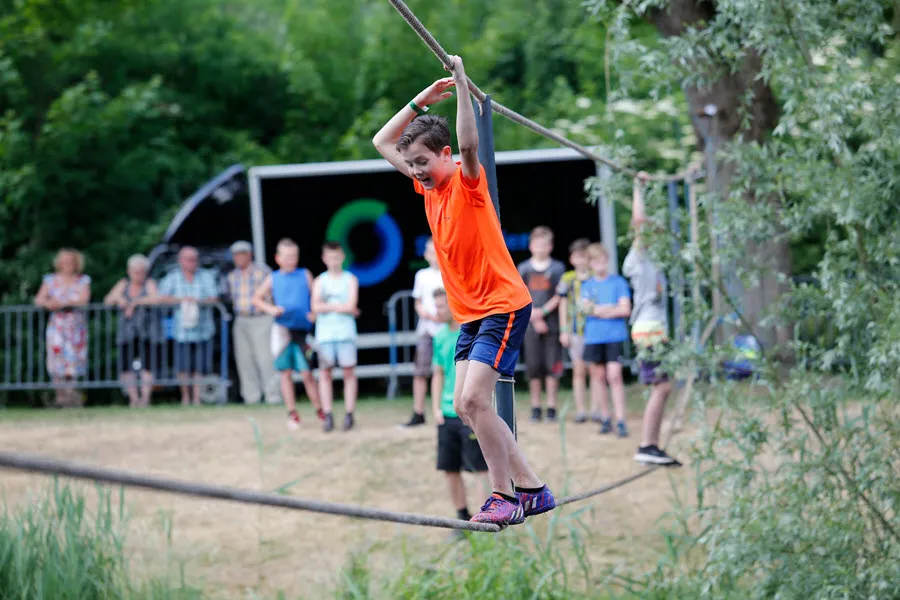 De survival voor de kinderen uit de groepen 6,7 en 8 van de basisscholen besloeg een 3,5 kilometer lange tocht vanaf De Vennen via het Trimbos naar de Kanovijver waar leuke en soms natte hindernissen te nemen waren. Alle hindernissen werden bemand door een groot aantal vrijwilligers. Een deel van hen is al sinds afgelopen weekend bezig met het bouwen van alle hindernissen en heeft al die dagen gekampeerd in de ‘tuin’ van zwembad De Vennen.