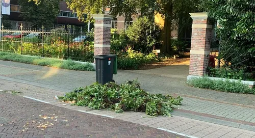 Een trieste aanblik in de Hoge Ham deze ochtend. Een deel van 'Hanging Baskets' die door Leer Dongen Kennen aan de lantaarnpalen bevestigd werden, zijn door vandalen van de palen verwijderd en lukraak op de straat gedeponeerd.