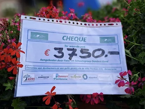 De Donders Goed fiets groep haalt een bedrag van maar liefst € 3750, op met de Zomerse 7 e Villa Pardoes Donders Goed fietstocht op zondag 8 september. ]