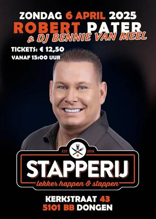 Maak je klaar voor een middag vol muziek en plezier! Op zondag 6 april 2025 verwelkomt De Satpperij de populaire zanger Robert Pater , bekend om zijn hits zoals ´Gina’ ´eenzaam en alleen´