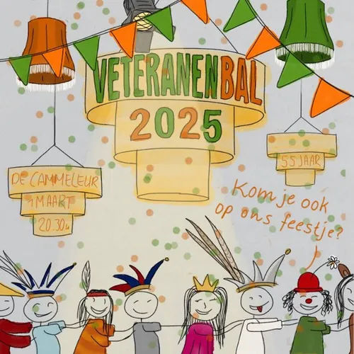 5 x 11 vraagt om een extra spectaculair Veteranenbal….en dat gaat er komen! Net zoals voorgaande jaren zal “huisband” BAM de tent weer volledig op z’n kop zetten. Samen met diverse topsolisten garanderen zij een extra feestelijke topshow! Als kers op de jubileumtaart ben je getuige van een aantal spectaculaire muzikale verrassingen die je niet mág missen. Rond de klok van 00.30 kan iedereen zich opmaken voor een “grand finale” die z’n weerga niet kent.Uiteraard worden ook dit jaar de mooist verklede Peeën en Peeërinnen beloond met mooie prijzen. Dus trek je mooiste feestpak aan en schitter op het feest der feesten!