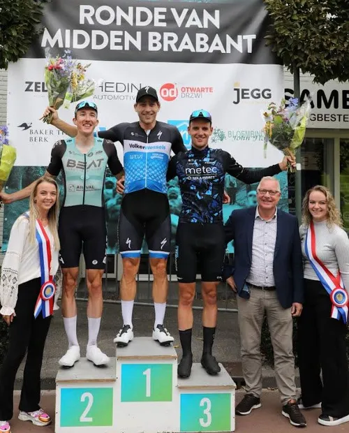 Er stond weinig wind waardoor ontsnappingen met de regelmaat konden worden terug gehaald. Van de 161 gestarte renners reden 94 de Ronde van Midden-Brabant uit. Uiteindelijk trapten zij 177 kilometer weg en trotseerden zij elf keer de kasseienstrook aan de Watertorenstraat. Het echte wielerpubliek verbaasde zich over de snelheid waarmee de latere winnaar de spurt aantrok. De inmiddels 36-jarige renner uit Vlijmen, lid van Volkerwessels Cycling Team, is geen onbekende op het podium in Dongen. Op zijn erelijst in Dongen staan de volgende uitslagen: 2019: 2e , 2021: 3e , 2023: 3e en dit jaar dus als winnaar op plaats 1. Nummer 2: Daan van Sintmaartensdijk (BEAT Cycling Club), Nummer 3: Victor Broex (Metec – Solarwatt).