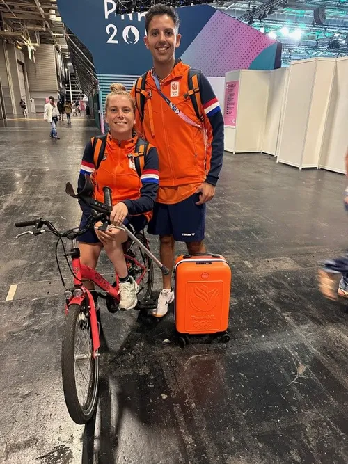 Tot slot, de afstanden zijn enorm, ook op het tafeltenniscomplex. Kelly rijdt daarom op een kinderfietsje rond om zo de krachten te sparen, maar dat is wel een leuk gezicht.