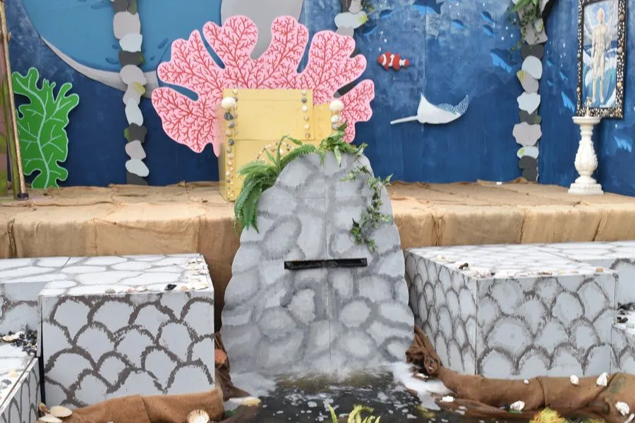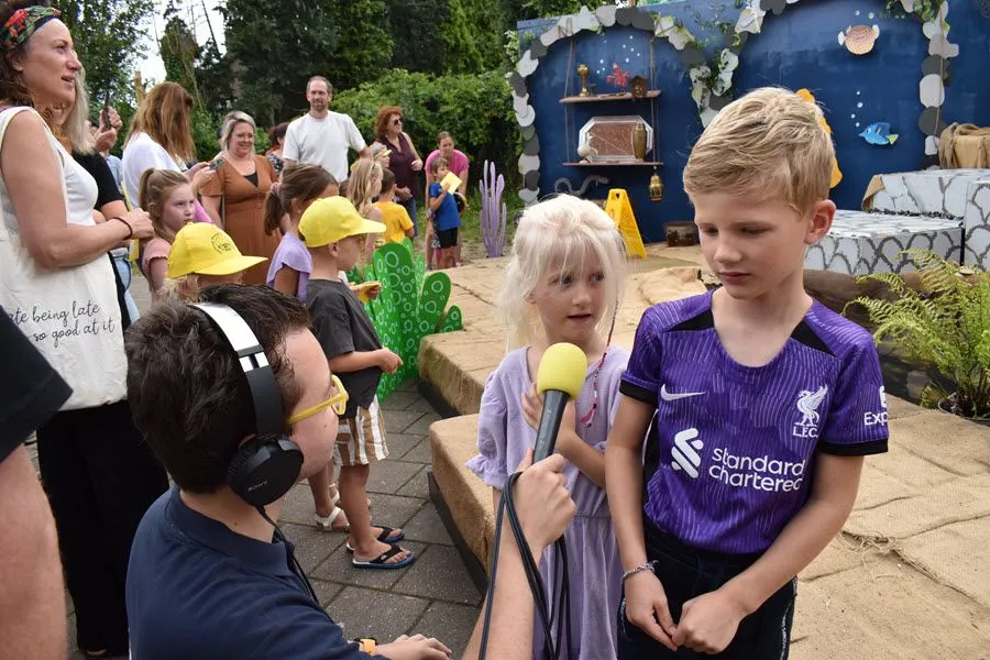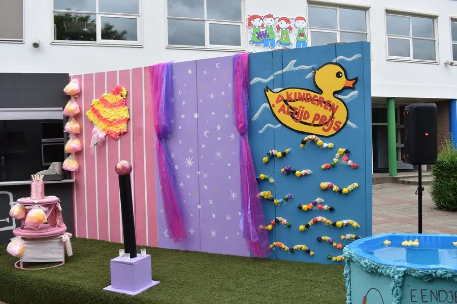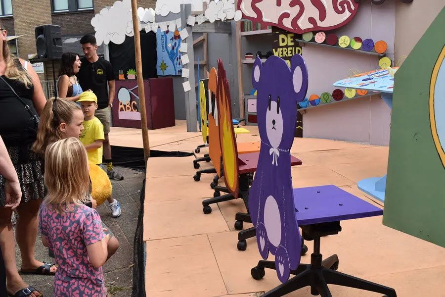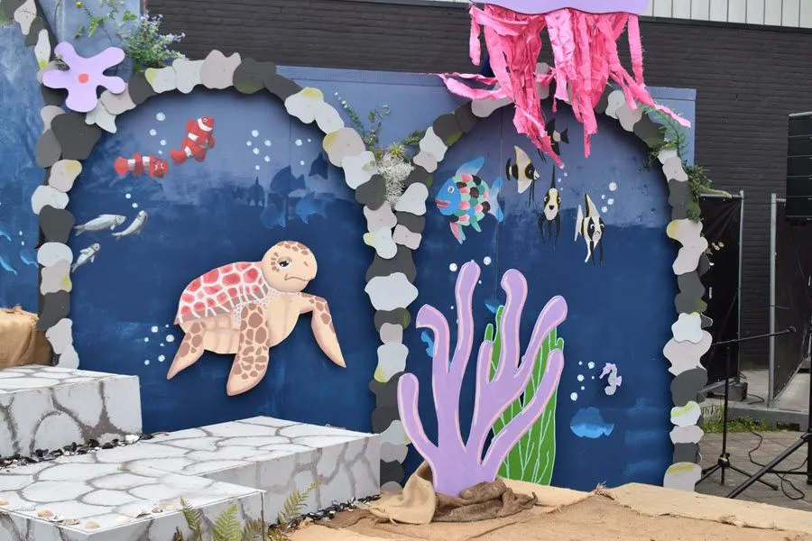 De hele werkweek hebben vrijwilligers hard gewerkt aan de decors en vele Dongenaren kwamen tijdens deze zonovergoten ochtend het resultaat van al deze inspanningen bekijken. Het was overal gezellig druk en de oooh’s en aaah’s waren niet van de lucht. Vooral het decor van de onderwaterwereld van groep 5/6 was adembenemend. Het publiek, waaronder natuurlijk veel kinderen, genoot zichtbaar van alle prachtige decors. Een ochtend vol voorpret!