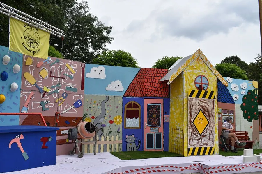 Het was weer erg druk rond het middaguur in de Dongense straten. Veel Dongenaren namen een kijkje bij de decors die deze week gebruikt gaan worden bij de verschillende groepen van de Zomerspelen.